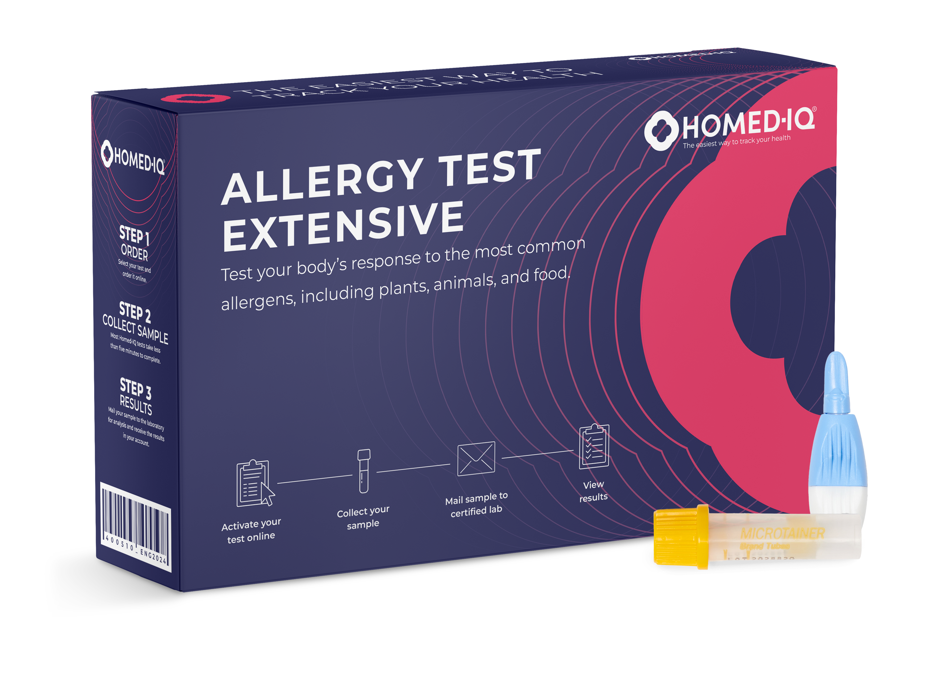 Do you suffer from symptoms such as sneezing, watery eyes, breathing difficulties, itchy skin, nausea and vomiting, or diarrhea? This could be caused by an allergic reaction. Learn your body’s response to common allergens that may be triggering symptoms. This home test checks the body’s IgE antibody response to 295 allergens, relating to 167 specific allergies and possible cross-reactions.